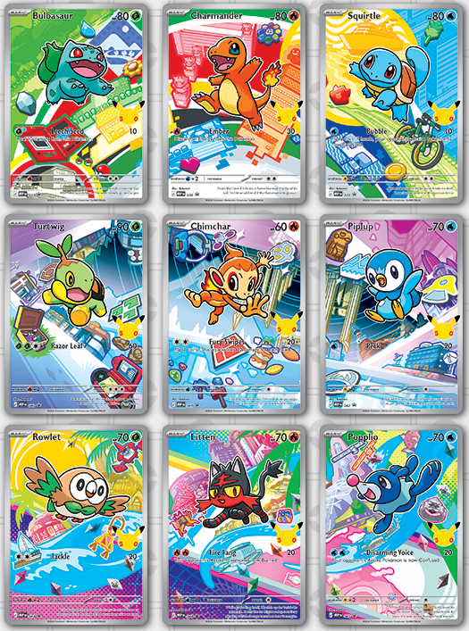 Prachtige verbindende illustraties van de geliefde starter-Pokémon.